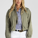 Odeeh's Radzimir jacket is lightweight, has a soft taffeta look and feel. We love the gold zipper and small tucks at the bottom. This jacket falls to the waist which is perfect for skirts or pants.