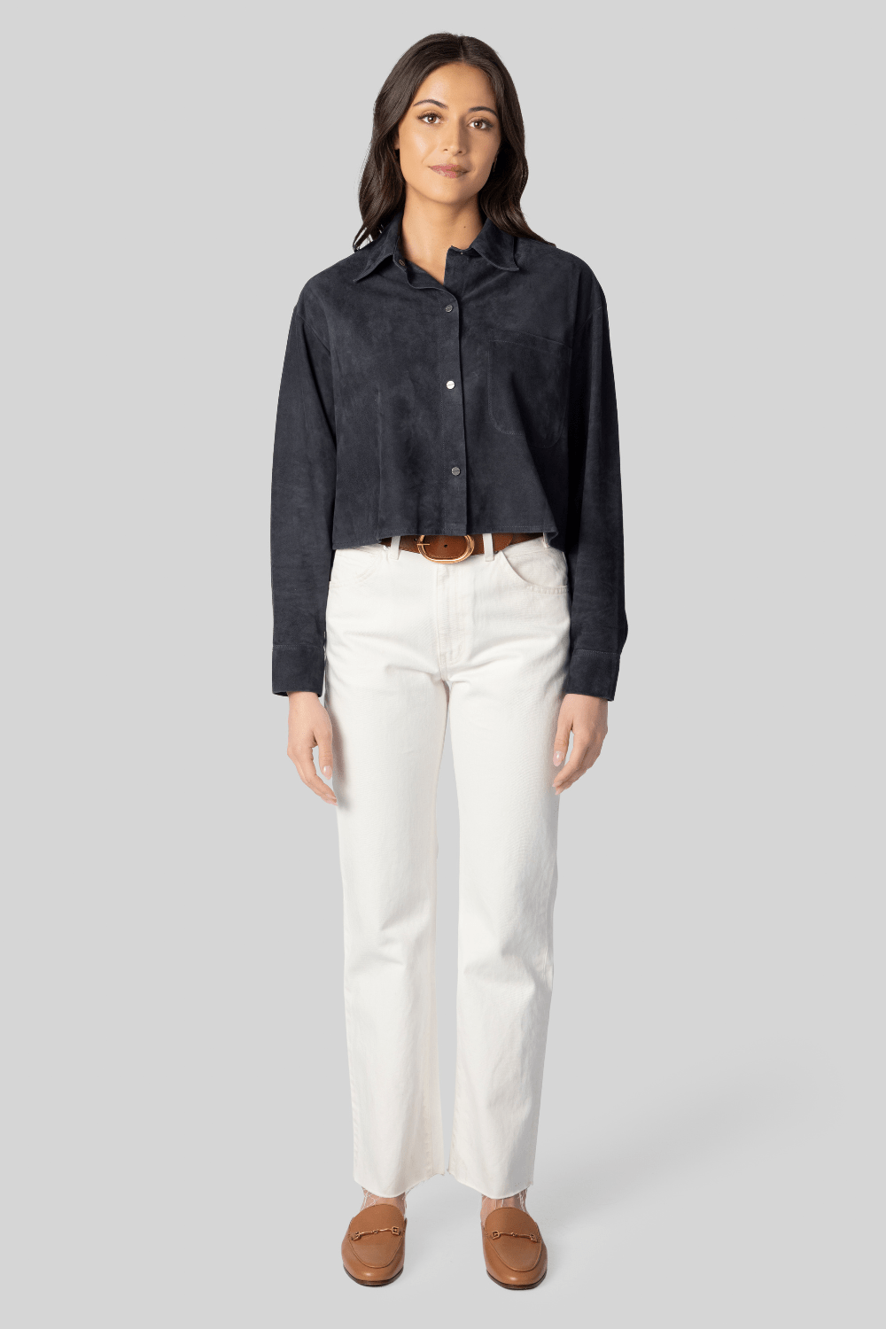 High-rise slim straight cropped jean in Japanese non-stretch heavyweight crosshatch denim. Fitted through waist and hips. Five pocket details. Zip fly. Shank closure. Belt loops. Raw hem.