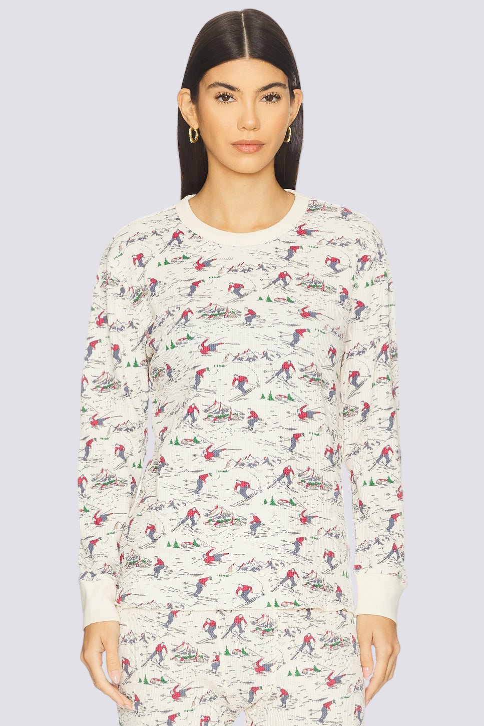 Inspired by the classic long johns we wore as kids, this updated take on a nostalgic top has a classic crew neck neckline and raw hem for authenticity and ease. Cutin the coziest waffle thermal fabric knit into a bold, wide stripe-this group is perfect for layering under puffers.
