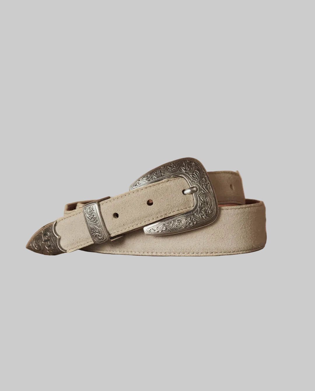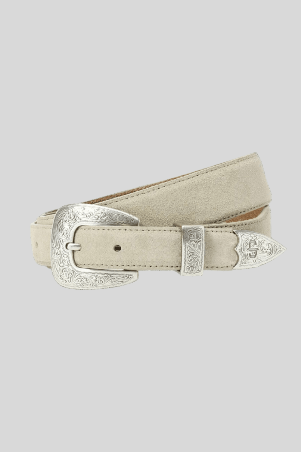 Made in collaboration with Stetson, this special edition tapered belt is crafted from rich, supple suede leather and features an engraved three-piece silver-tone buckle set.