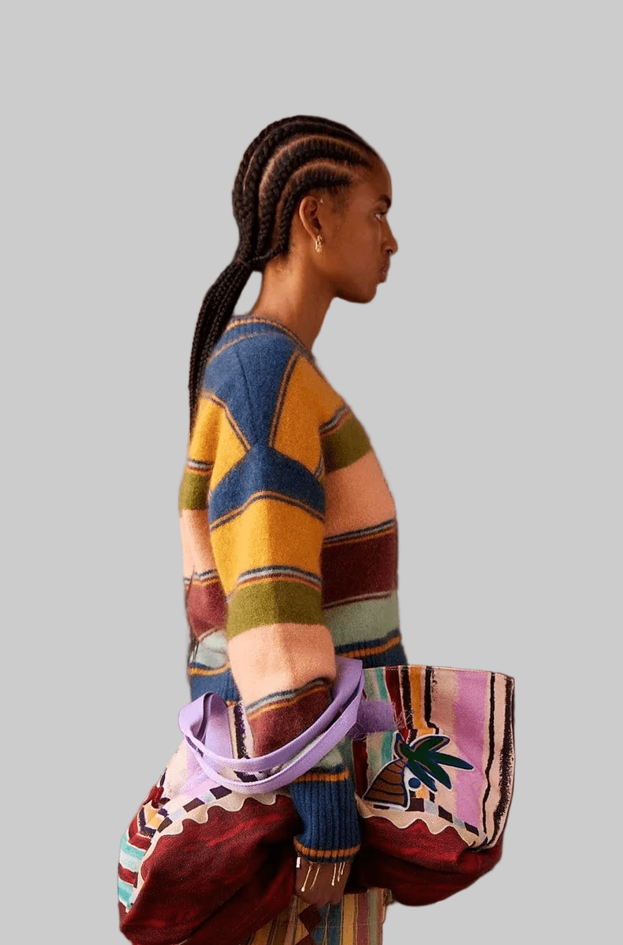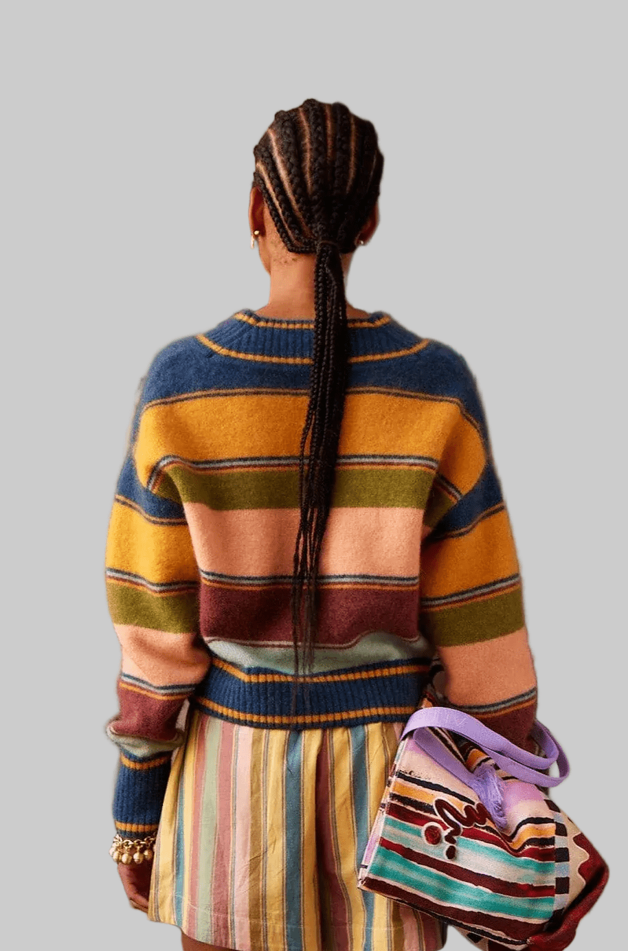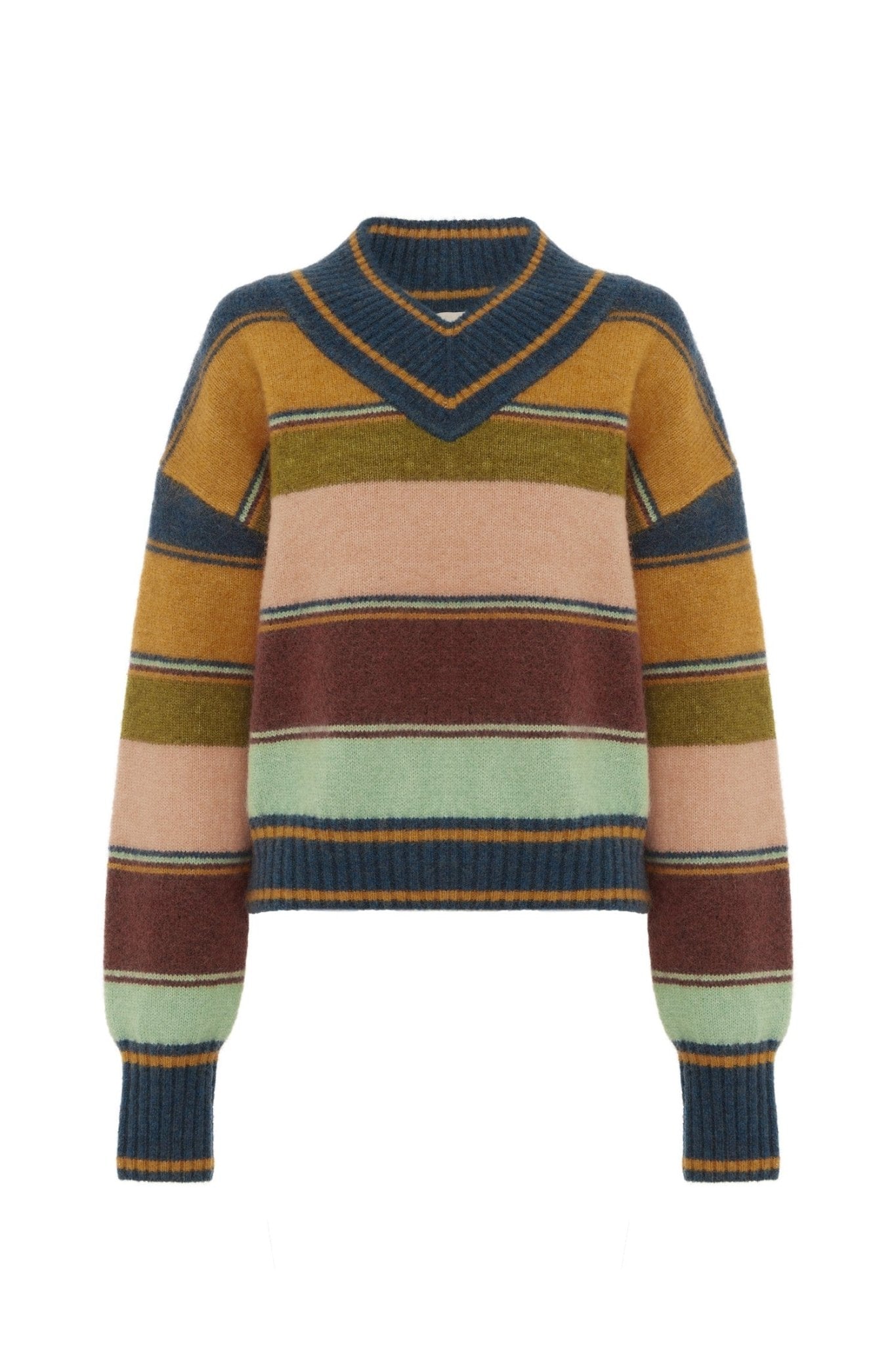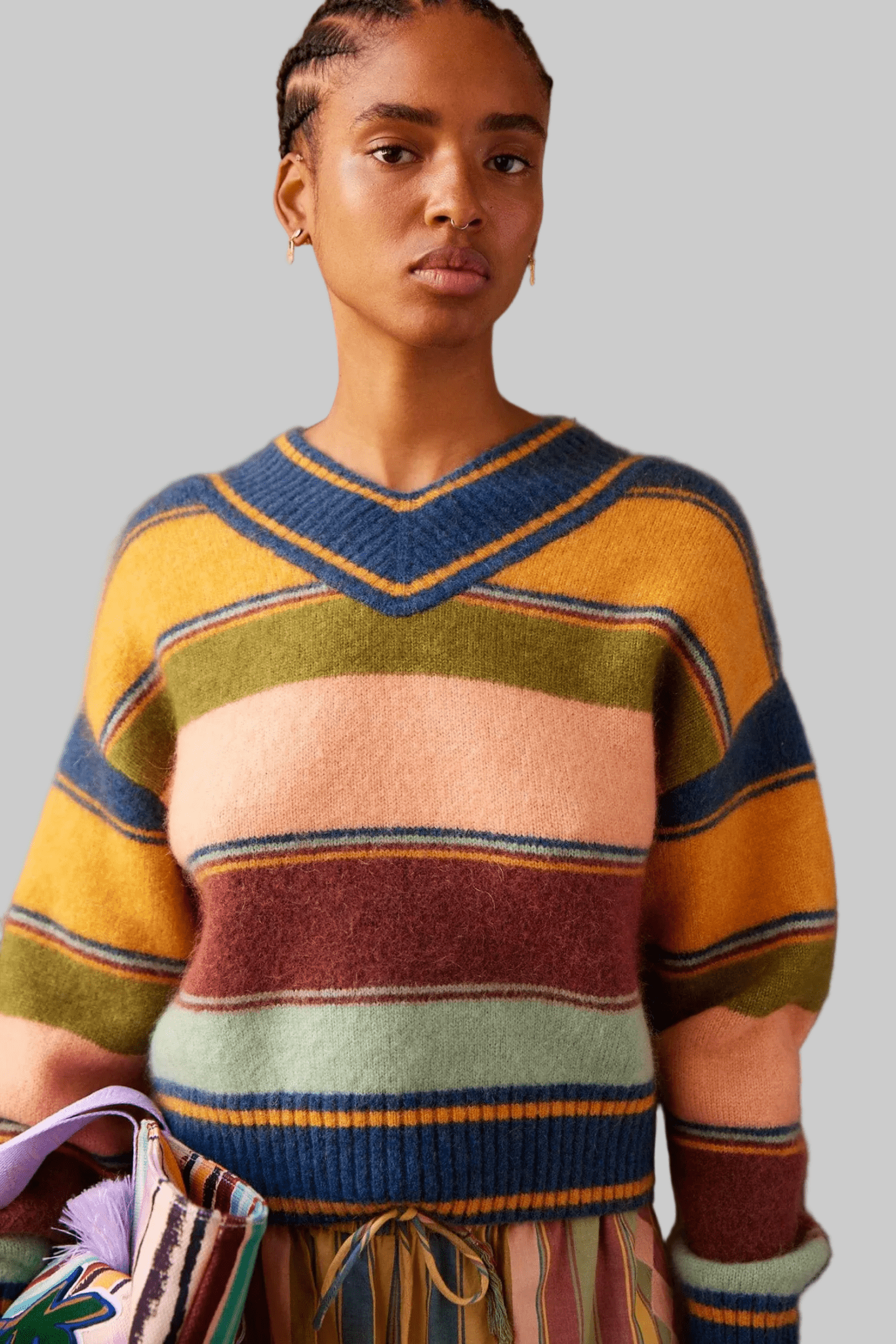 Alemais' colorful v-neck sweater has a brushed surface that looks playful and feels gorgeous. It has a relaxed silhouette and dropped shoulders.