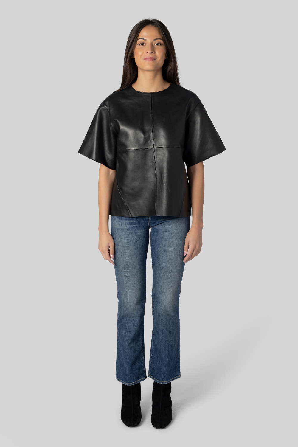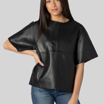 The Frieda top is made of soft lamb leather. It is a staple this fall for your wardrobe. Pair it with jeans and black boots or your favorite pair of pants.