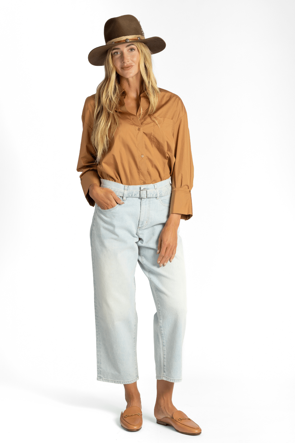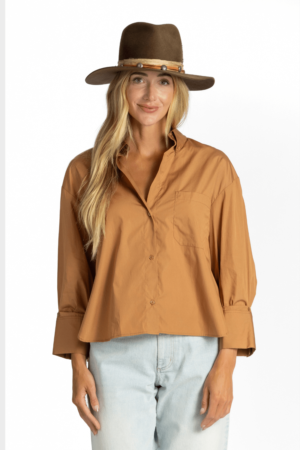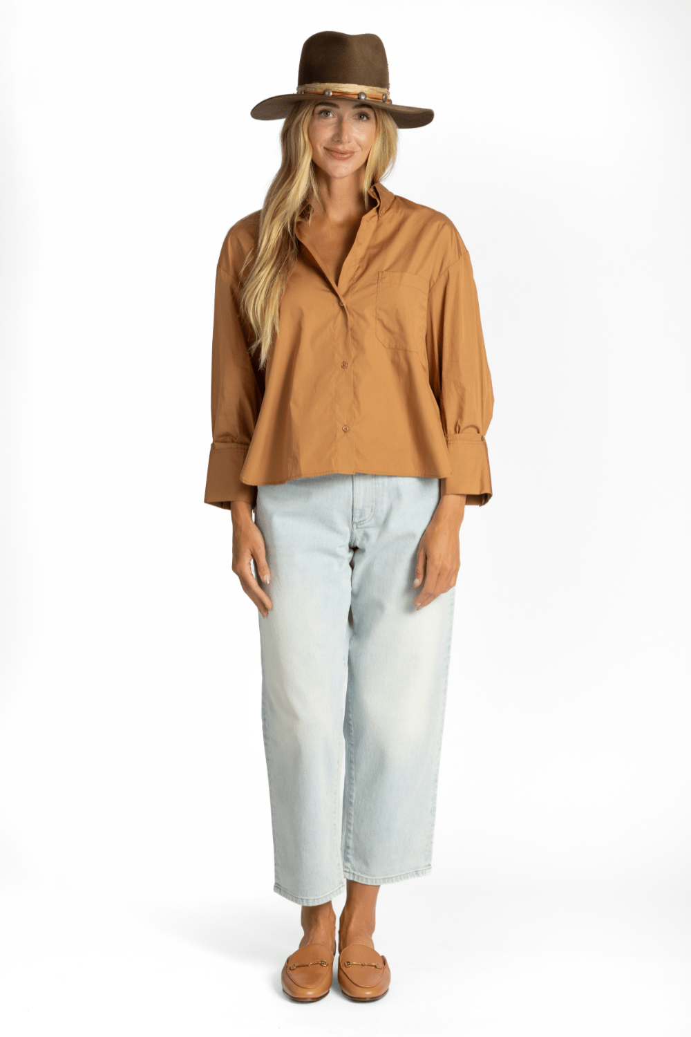 Slightly cropped long sleeved button up in soft and textured Oxford cotton, modelled after a classic men’s shirting fabric. The J.D is a boxy fit with a curved hem and box pleat at the back. Complete with a chest patch pocket, point collar and our signature single roll button cuffs.