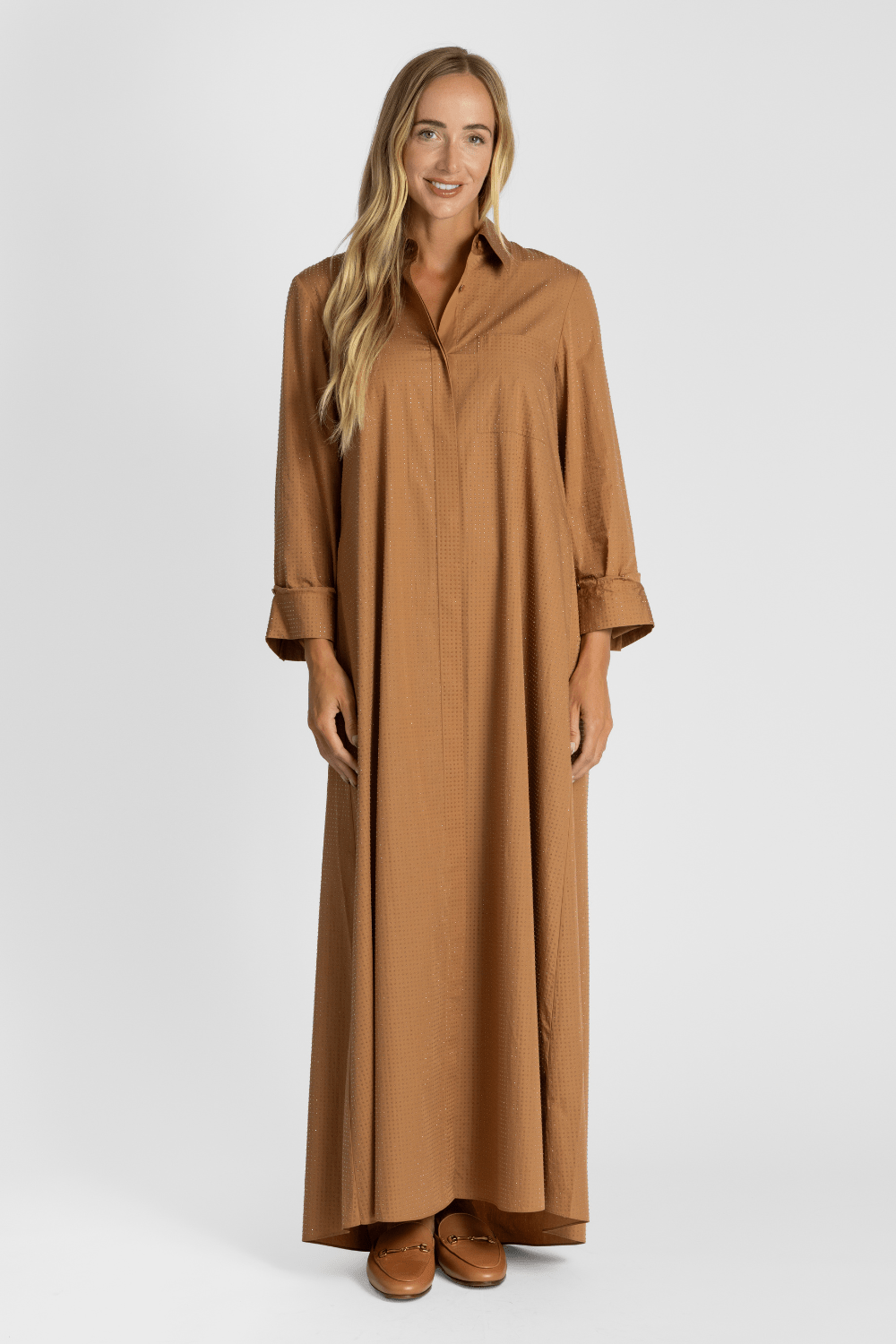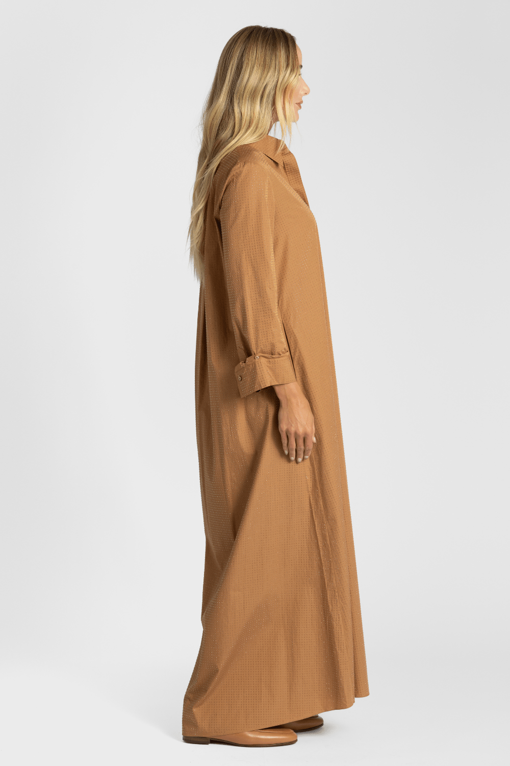 Oversized maxi shirtdress in Italian superfine cotton, embellished with over 100,000 clear faceted crystals that sparkle in the light. Relaxed silhouette with TWP's signature single roll button cuffs.