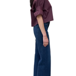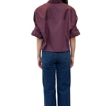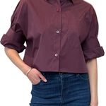 Cropped, short sleeved button down in striped cotton poplin. Boxy silhouette. Complete with a chest patch pocket, button up placket, spread collar, and our signature double roll button cuffs.