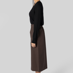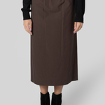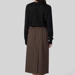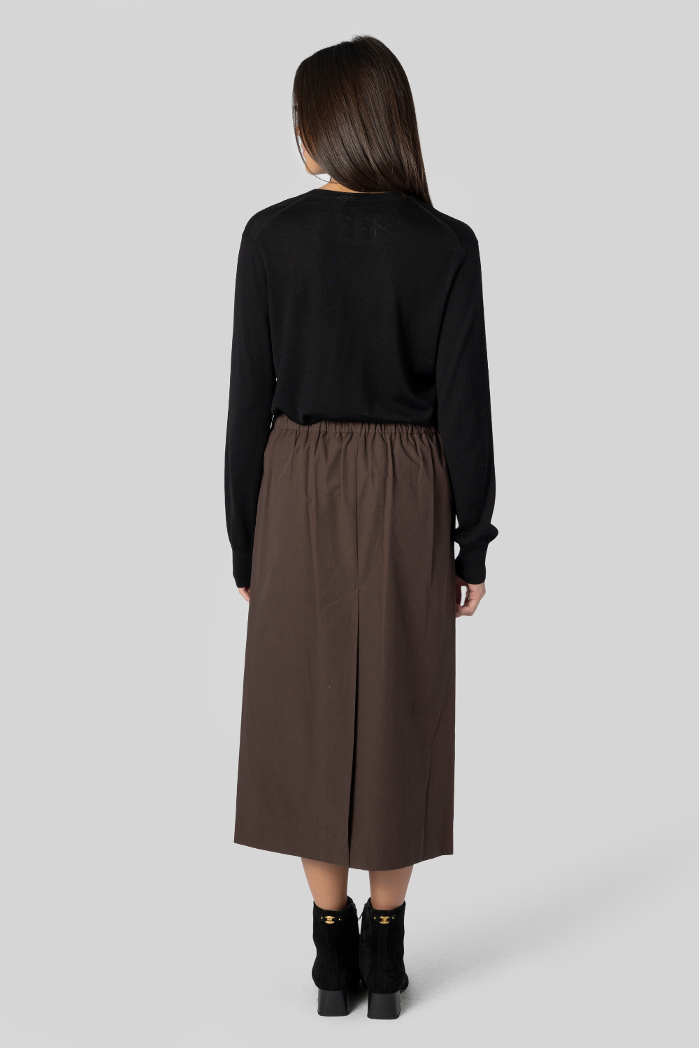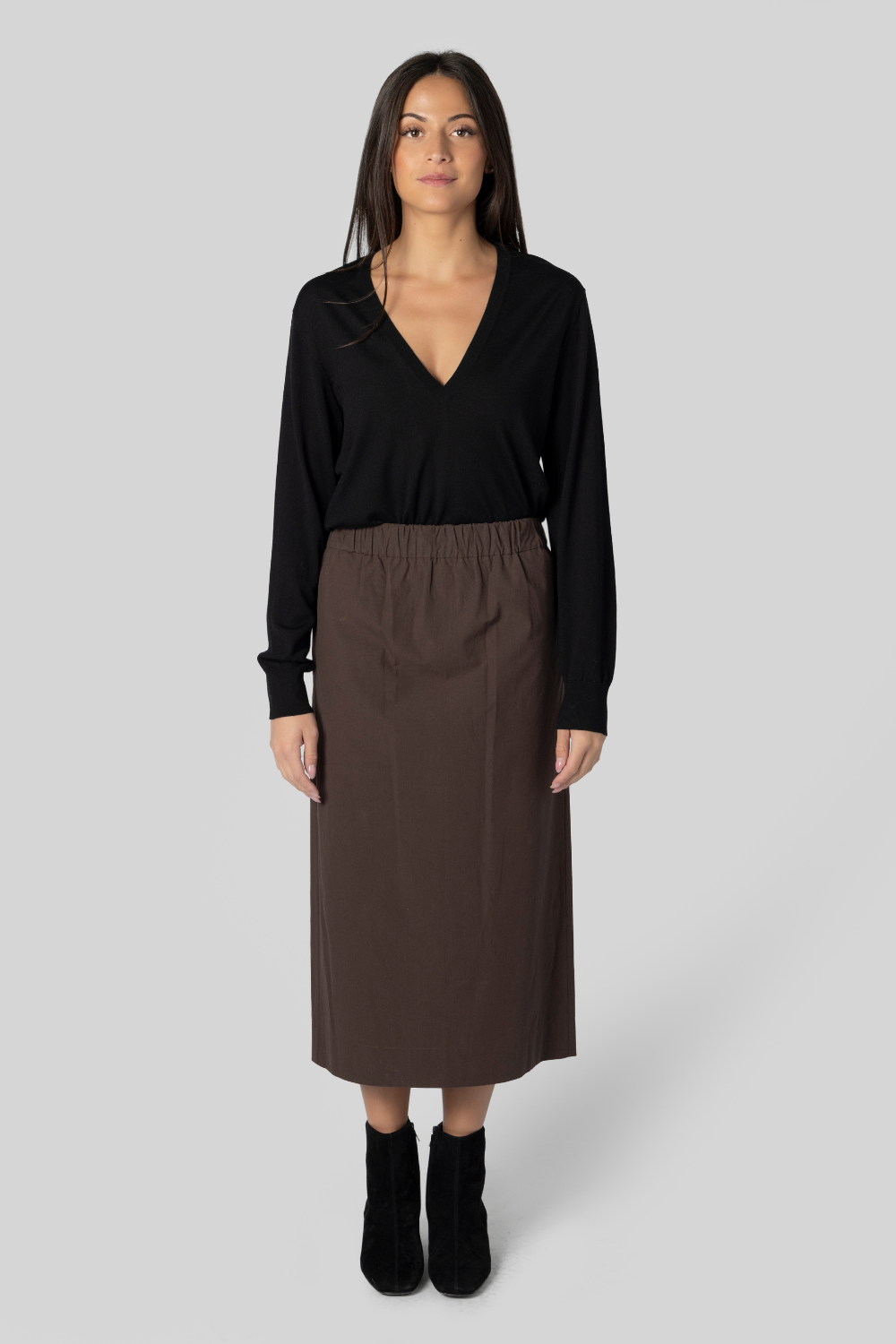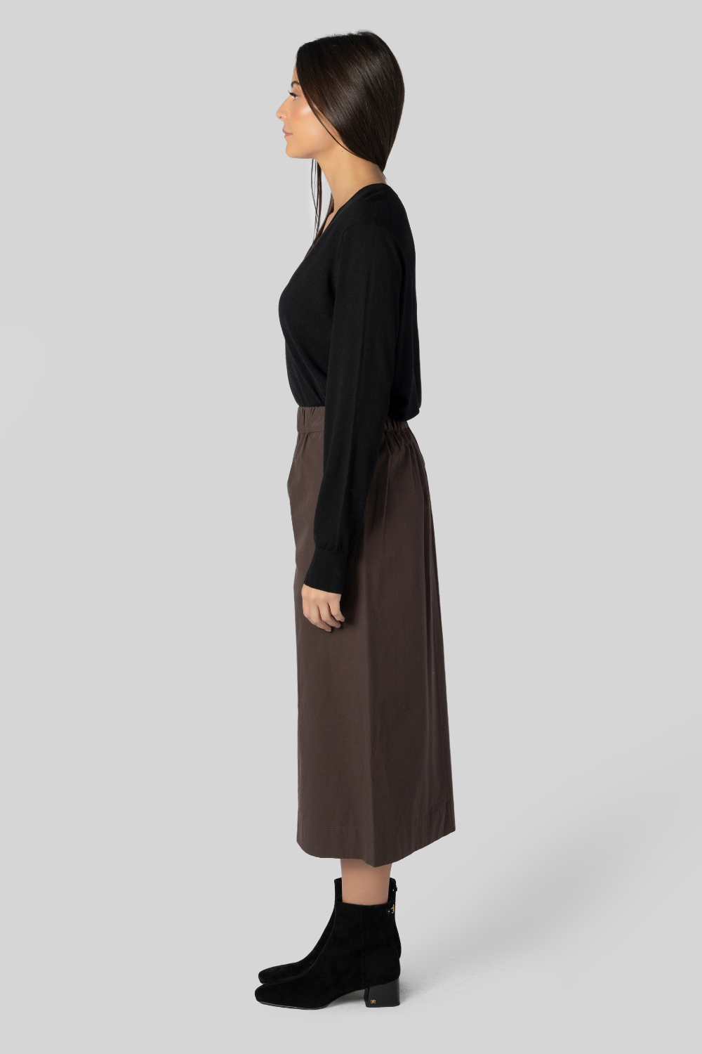 This Gauchere calf-length skirt in cotton with A-line silhouette and elasticated waist is perfect for any occasion. With side slip pockets and a back slit, this skirt offers comfort and sophistication.